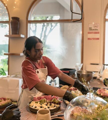 3) Desenhe o cardápio e o serviço ao vivo, treinando a equipe para manuseio seguro e apresentação apetitosa.